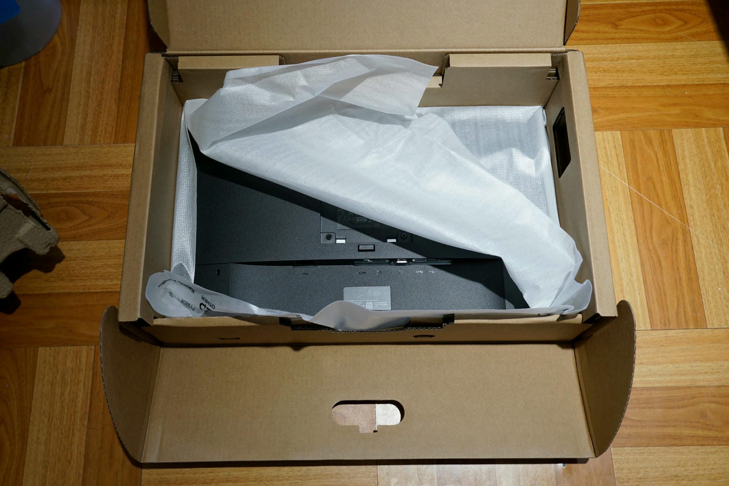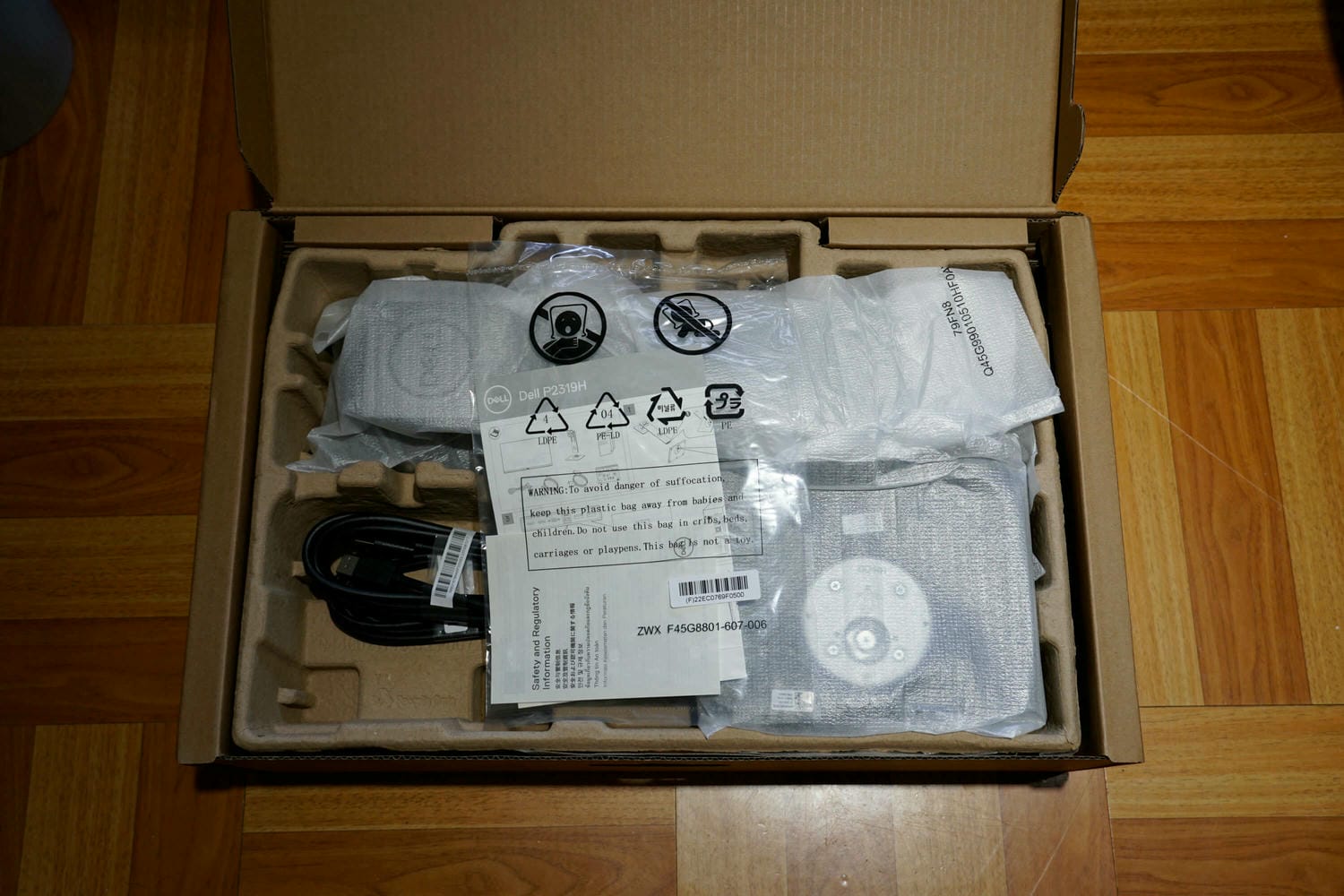打開後也是全紙,與台廠一比真的是高判立下,台廠滿滿的保麗容對環境真的不友善,而且聲音超噁;箱內附的線只有 DP 和 USB,真搞不懂這年頭廠商,寧願給 DP 也不給 HDMI