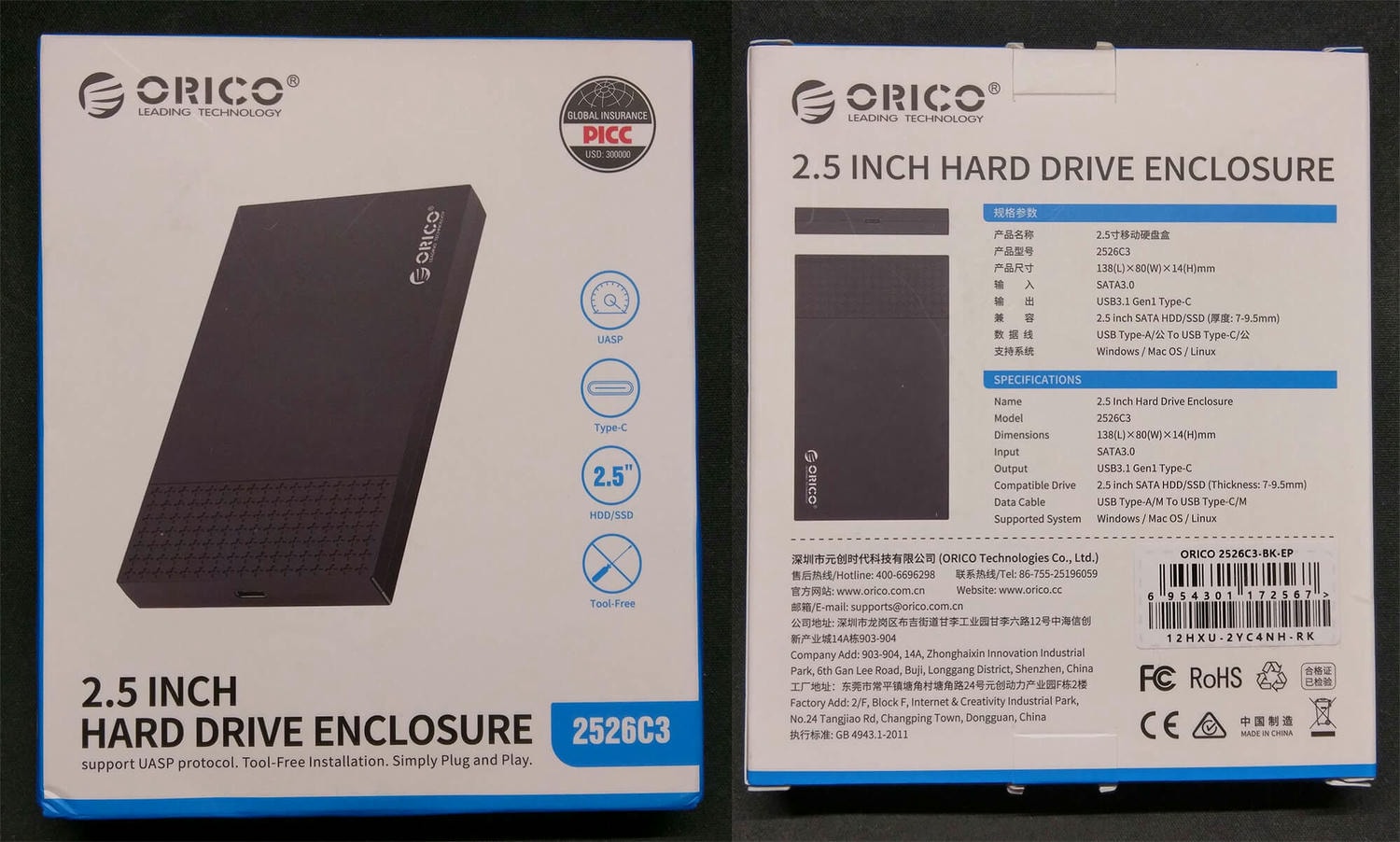 開箱 - ORICO 2.5 寸外接硬碟盒 2139C3 與 2526C3