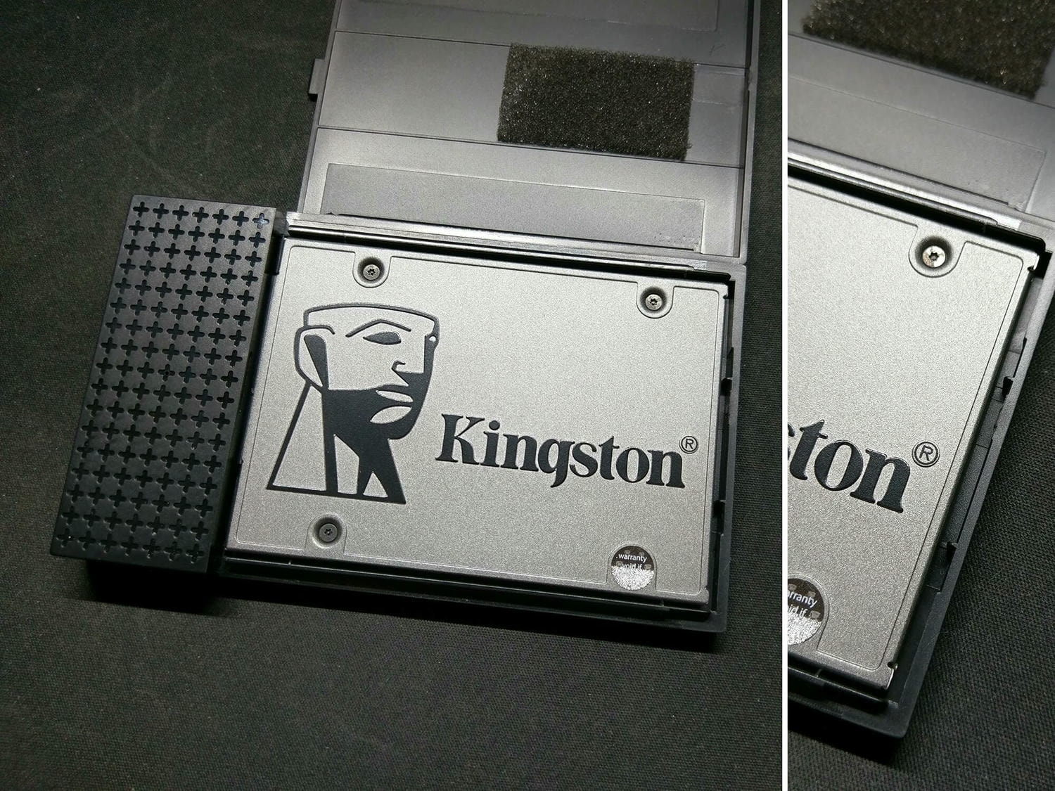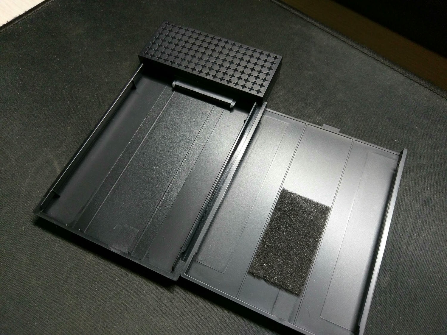 - 上蓋蓋起後若上下晃動可明顯聽到硬碟在晃動,這時只要將盒內附的海綿貼至上蓋即可解決。